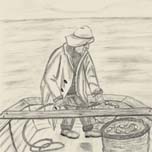 Late in the afternoon he stopped the engine and began to reel in the nets